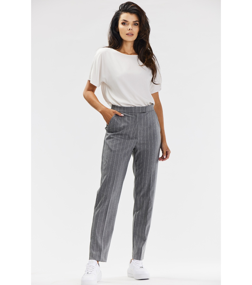 High-waisted trousers. Flared legs. Pants with zipper and front button. They look perfect with a jacket of the same color.Presented size: S, model height: 172 Fabric: 95% polyester, 5% elastaneWash at 30 degrees in a mild detergent, do not bleach, do not tumble dry.Iron on low temperature.The product is made in Poland. High-waisted trousers. Flared legs. Pants with zipper and front button. They look perfect with a jacket of the same color.Presented size: S, model height: 172 Fabric: 95% polyester, 5% elastaneWash at 30 degrees in a mild detergent, do not bleach, do not tumble dry.Iron on low temperature.The product is made in Poland.
