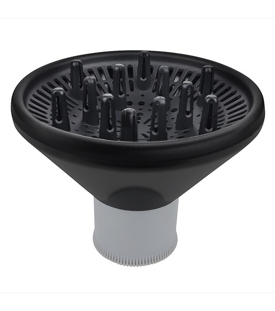 El cuello del difusor está diseñado con pestañas internas de silicona, lo que permite que se fije de forma segura al secador, evitando que se caiga durante su uso. Además, el difusor dispone de dos modos de salida del aire que se pueden ajustar simplemente girando el aro externo del mismo.